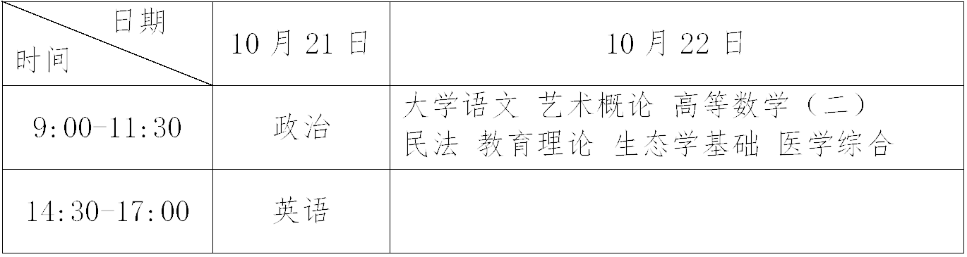 (1)文史(含外语类)、中医类:政治、英语、大学语文;
