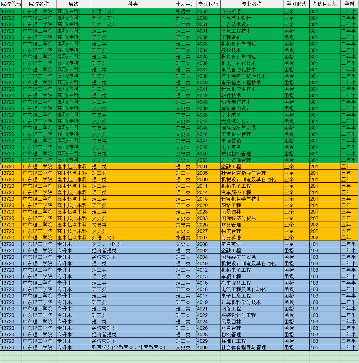 招生专业目录