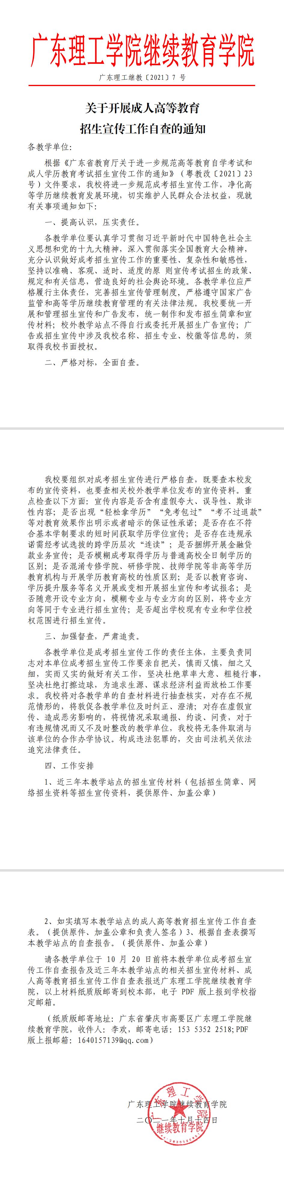 关于开展成人高等教育招生宣传工作自查的通知