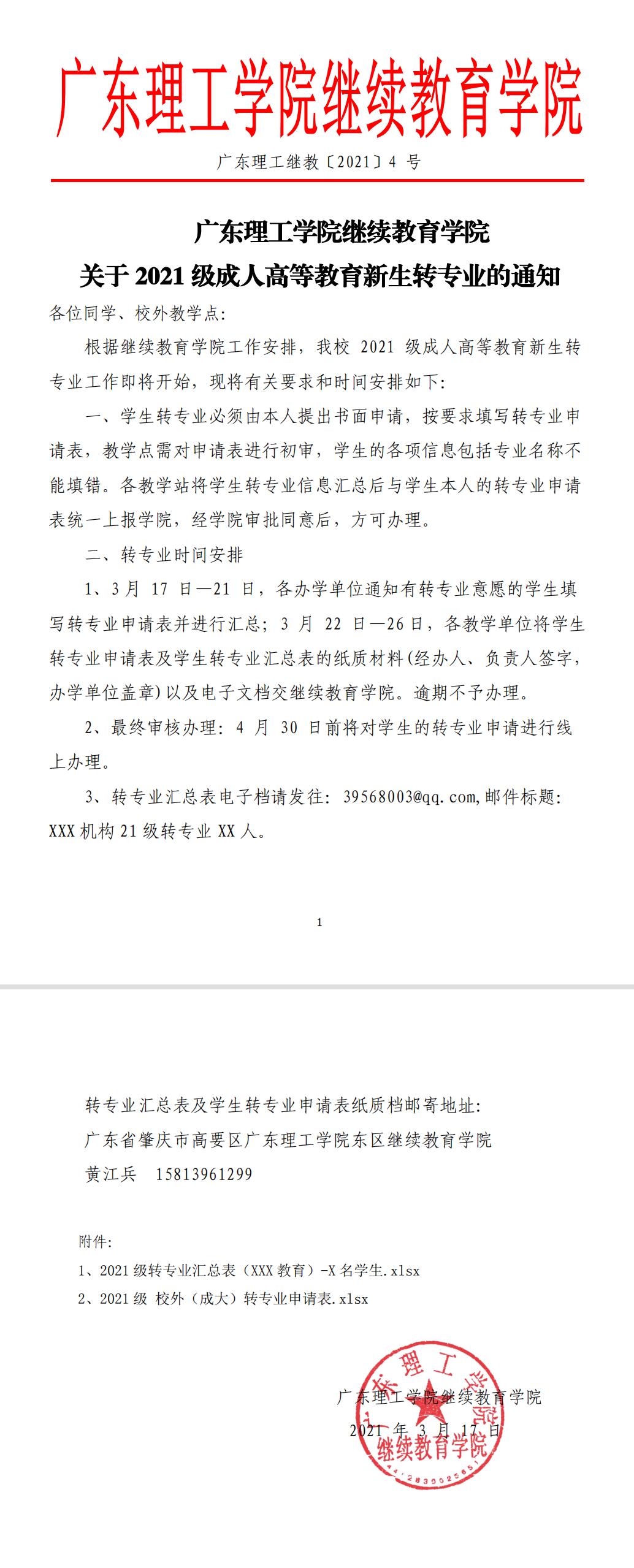 OK138太阳集团关于 2021 级成人高等教育新生转专业的通知