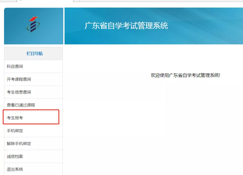 二、选择报考科目 登录管理系统后,点击左侧导航栏考生报考按钮(见图3):