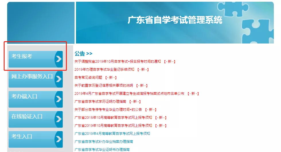 所有考生均须在报考前先注册“粤康码”,考前14天都需要进行健康申报。 一、登录报考网址 考生用电脑登录广东省自学考试管理系统: https://www.eeagd.edu.cn/selfec/ 点击“考生报考” 按钮(见图1)如果网页登不进去,请检查好自己的电脑是否设置了拦截网页,如有需要解除才可以,还是不行的话,请换浏览器重新打开网页!