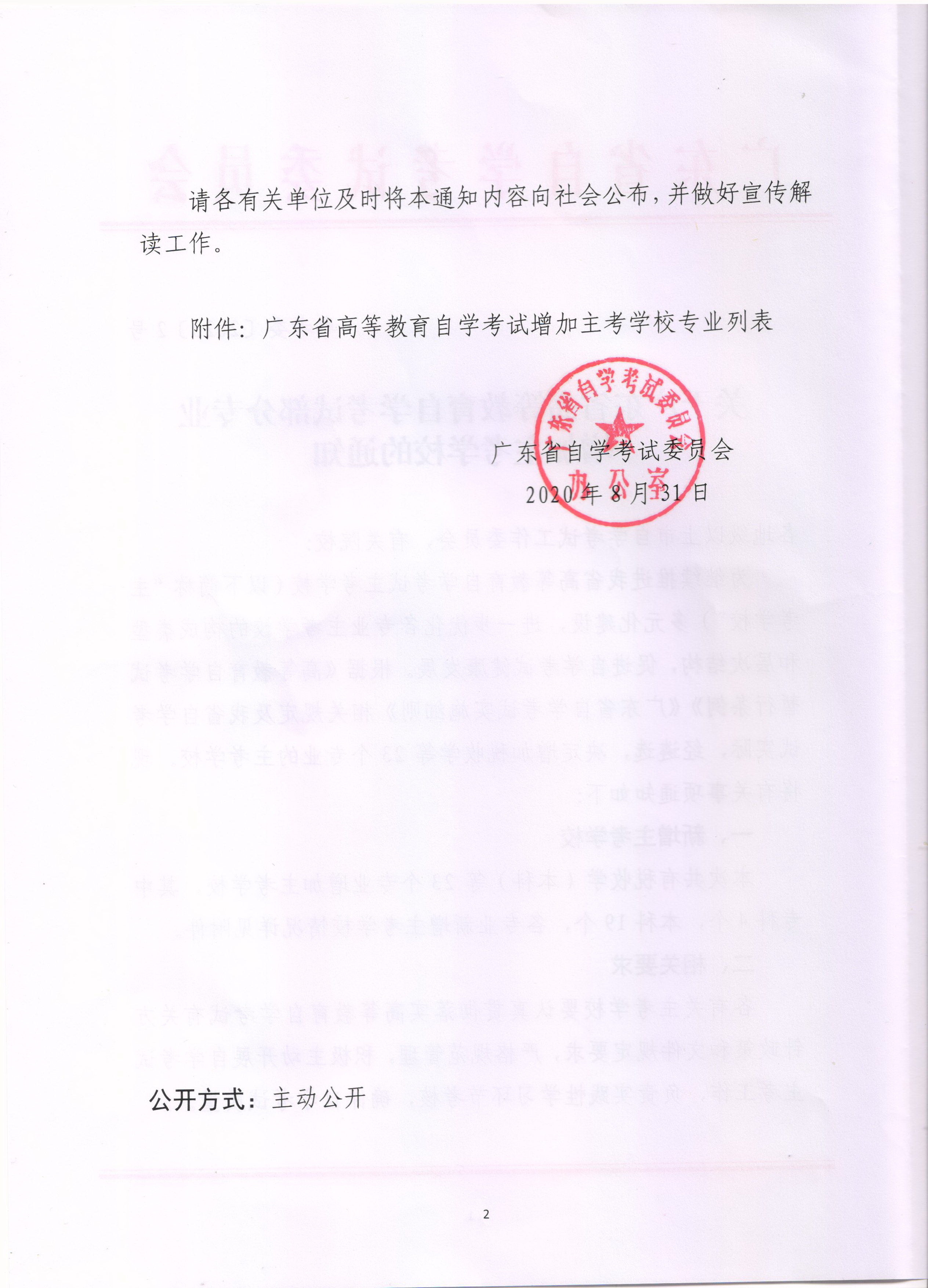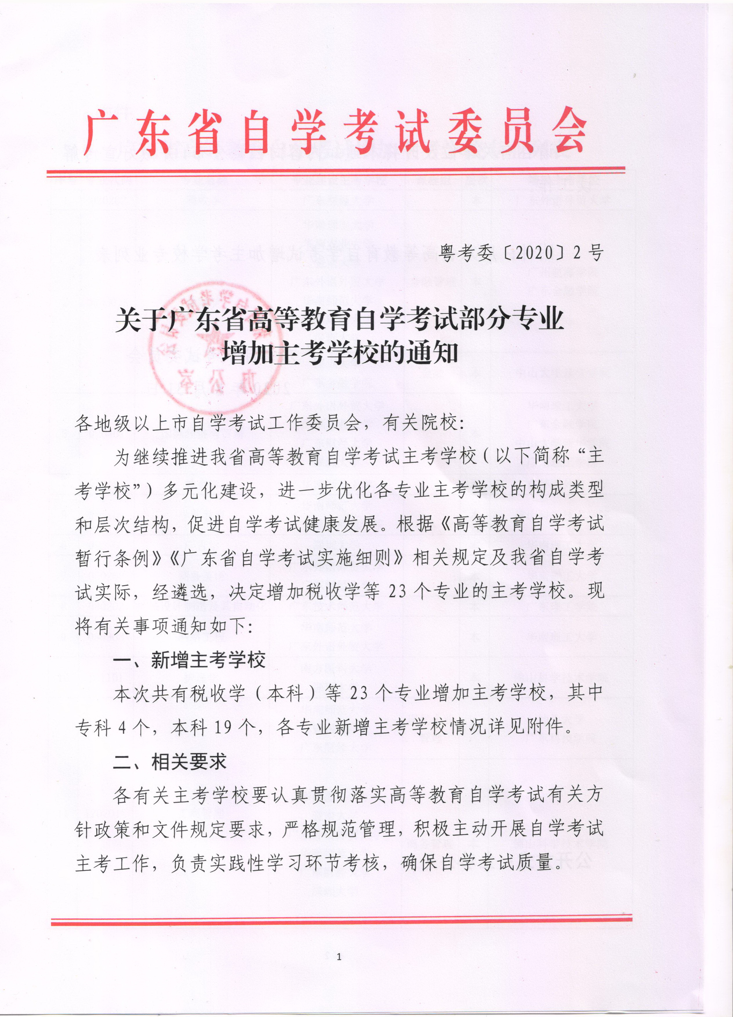 广东省自学教育自学考试部分专业增加主考学校的通知